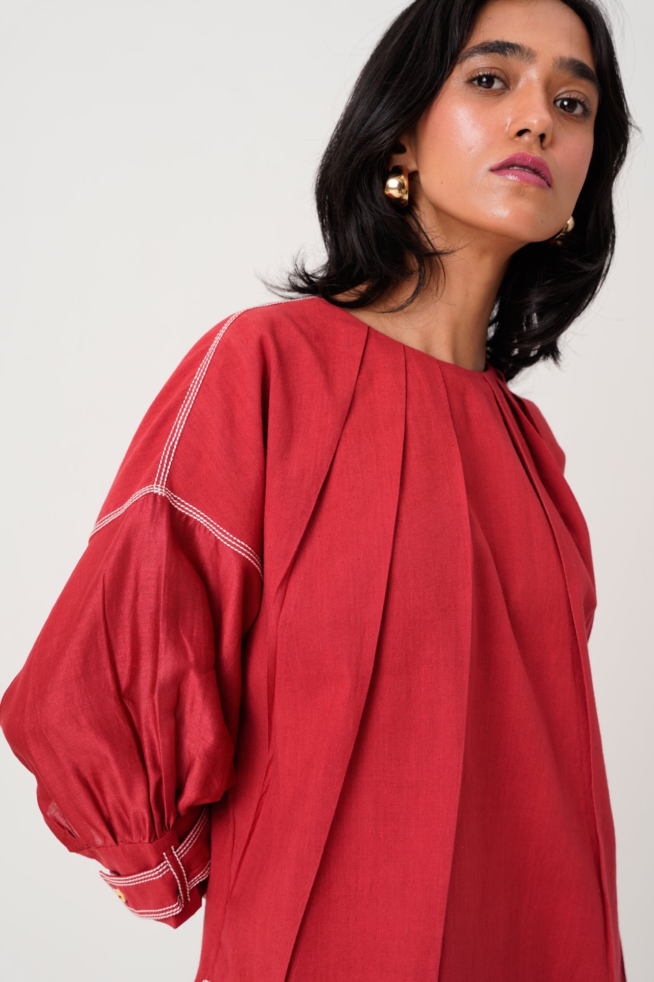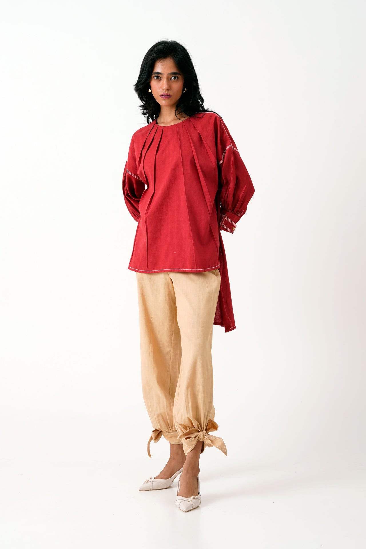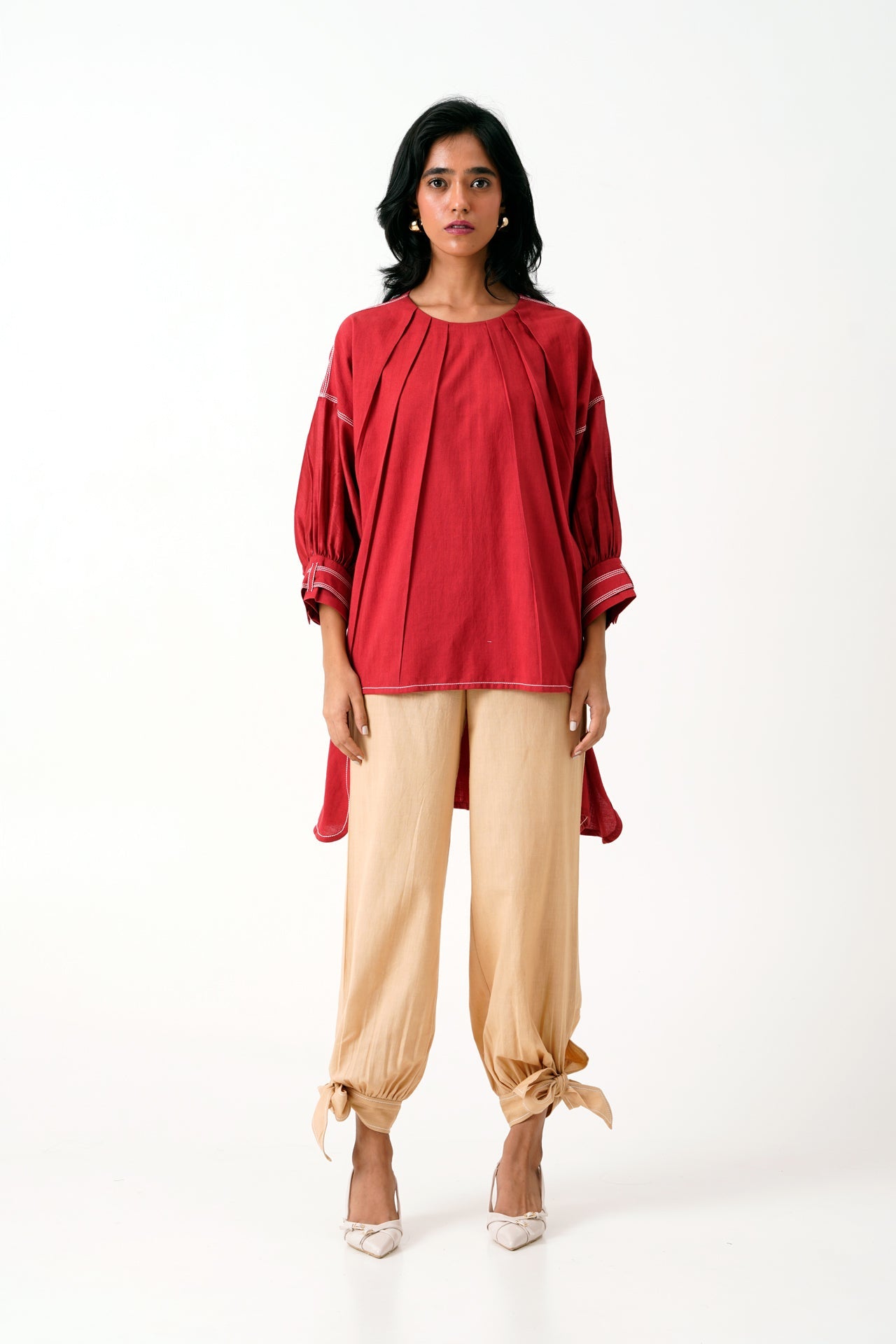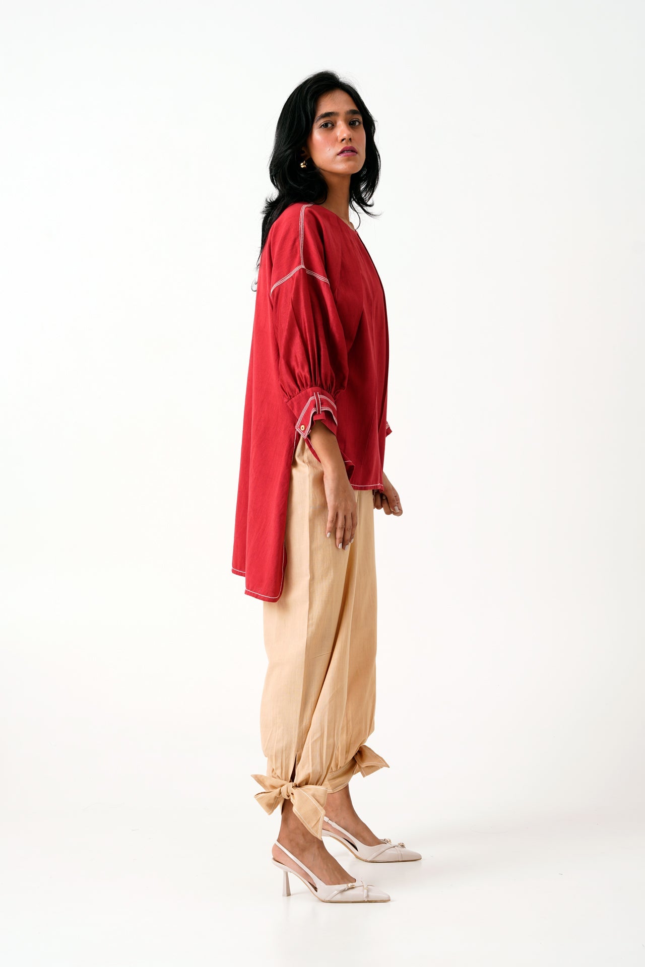 Ariel + Eva - Madder Pleated Top + Latte Bow Pant