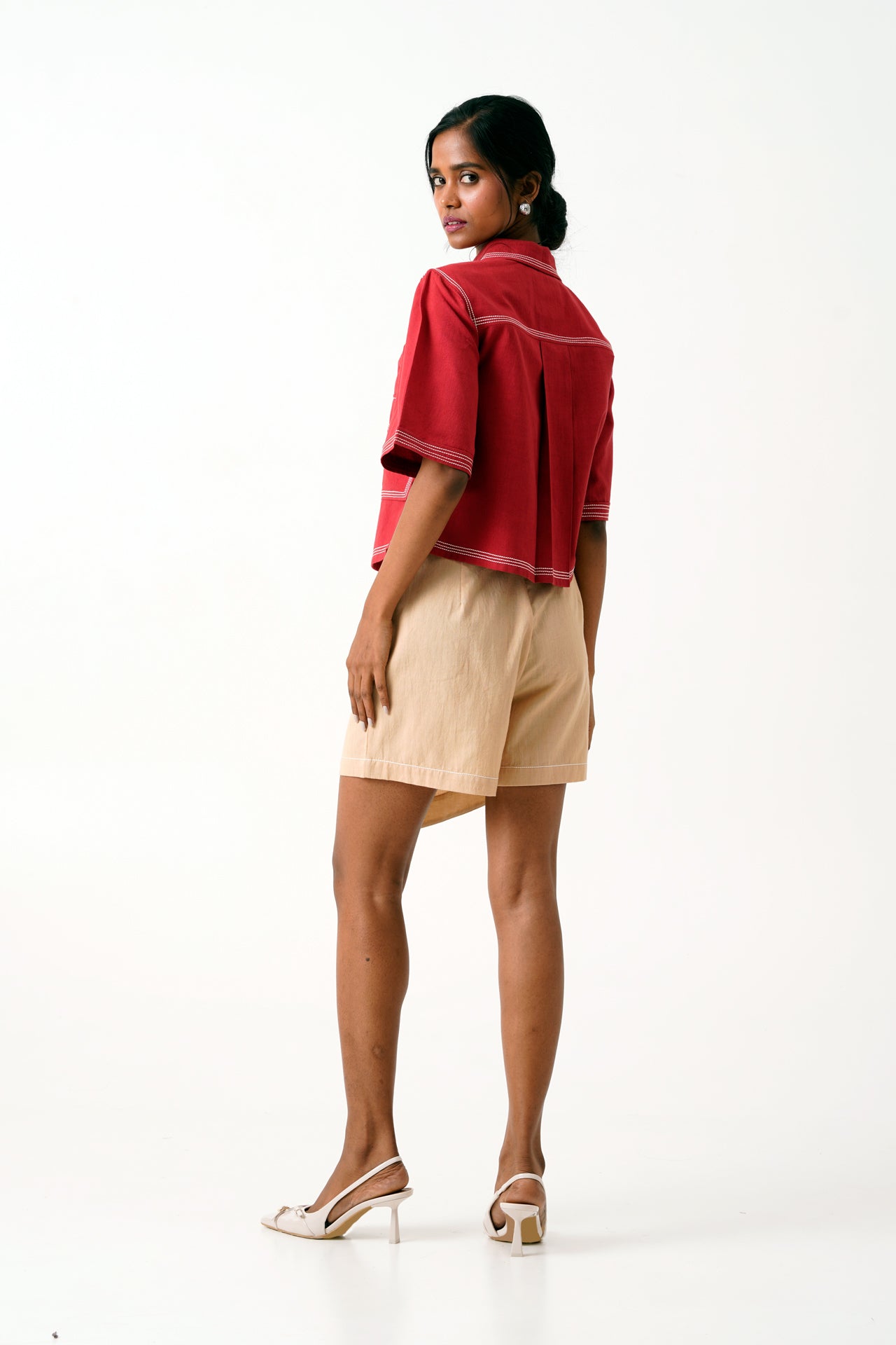 Blake & Tom - Madder Red Pocket Crop Top + Latte Skort