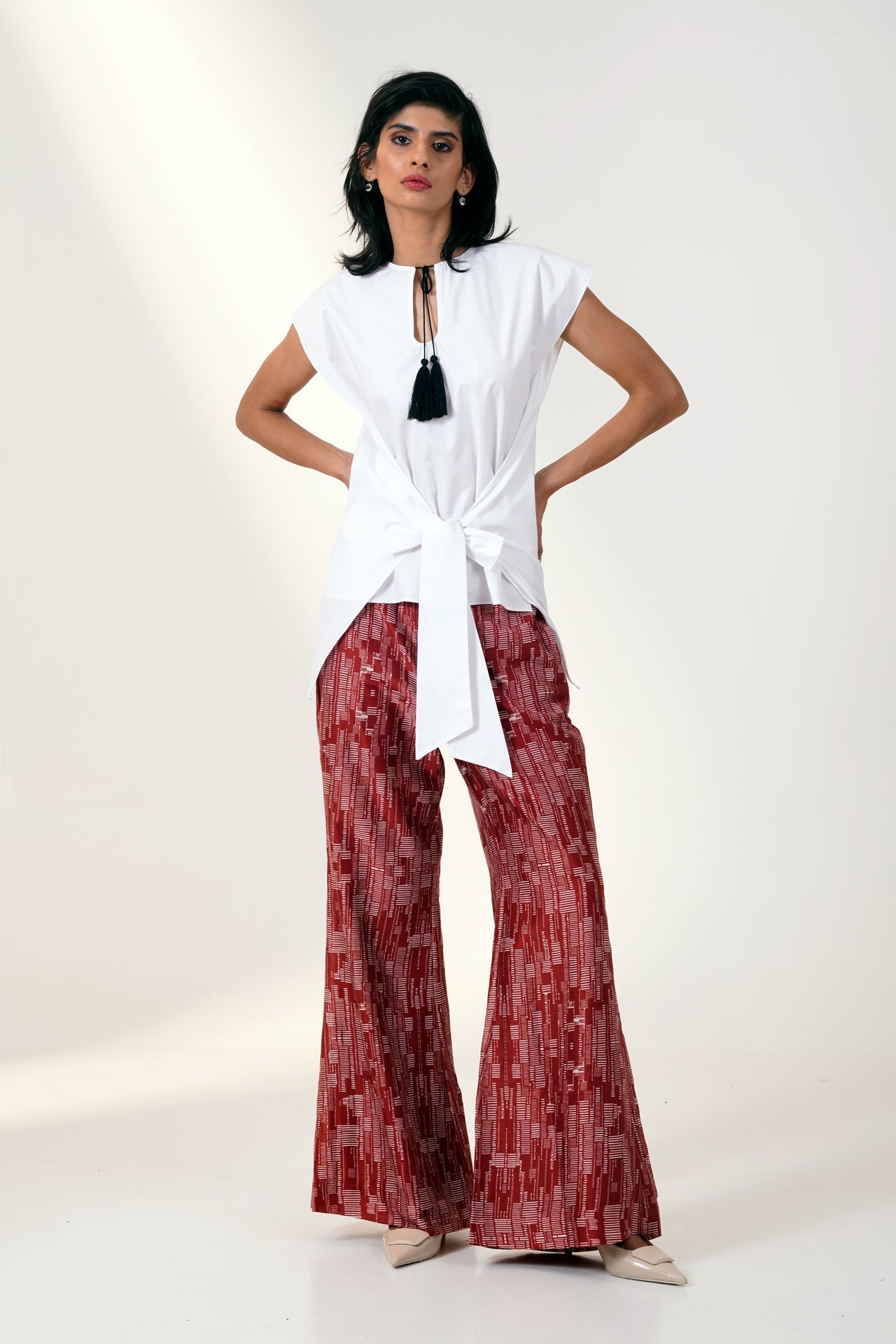 MARTINA II - BOW CLUTCH TOP WITH PRINTED BELL BOTTOMS
