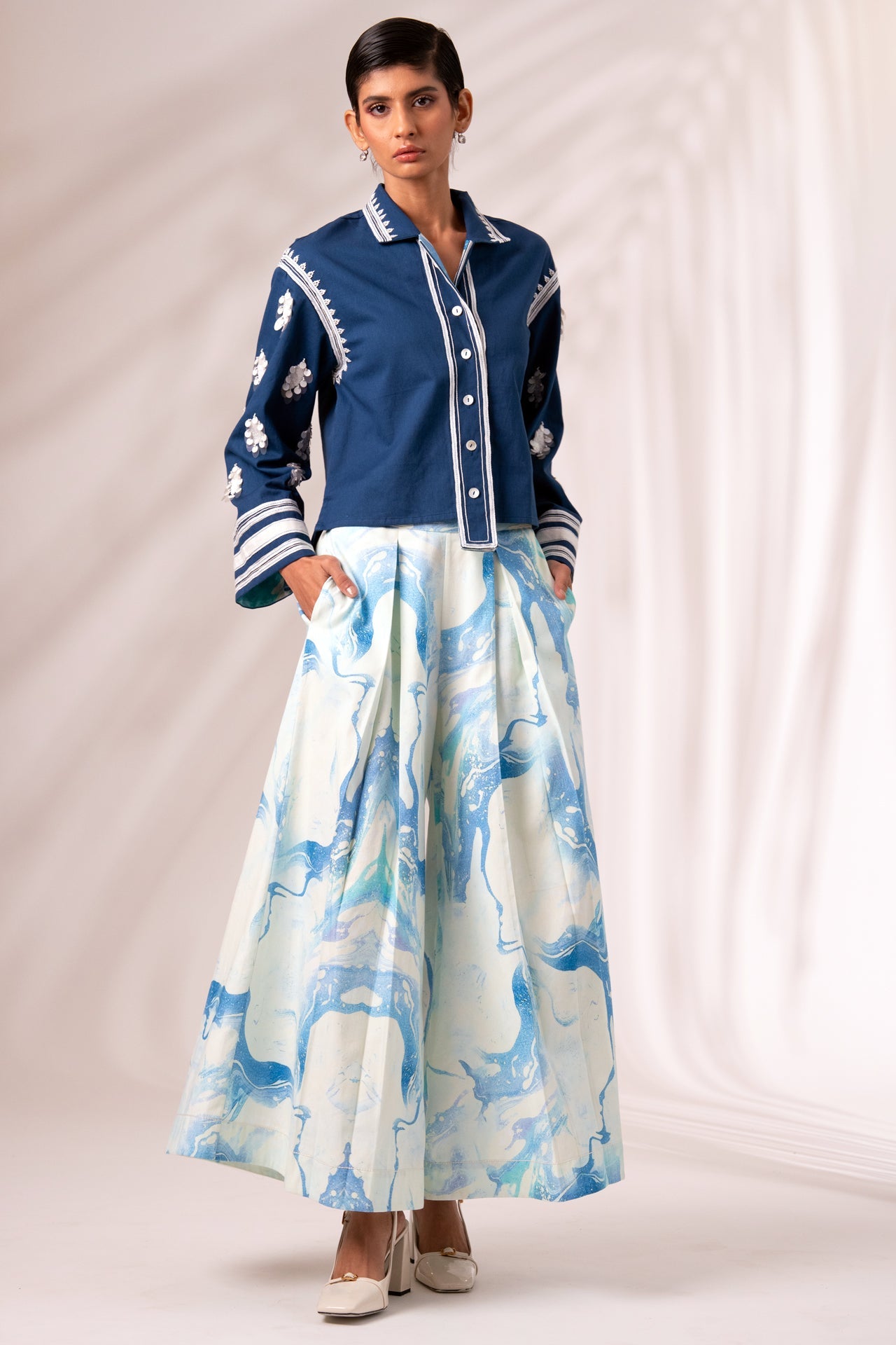 Indigo Cosmo Top + Rico Pleated Culottes